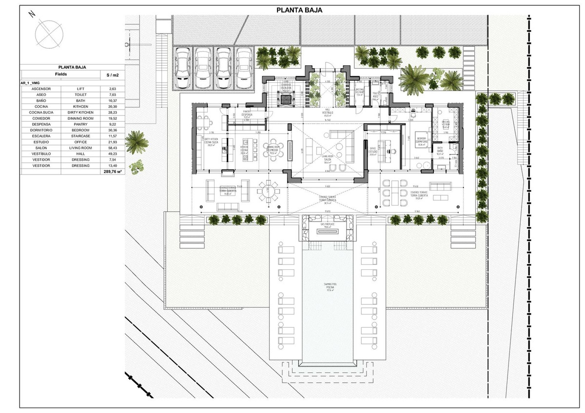 The villa features six spacious bedrooms, each with its own en-suite bathroom, as well as a guest toilet, ensuring comfortable accommodation for family and guests. The interiors are meticulously appointed with high-end finishes, including porcelain flooring, fitted wardrobes, and glass doors, while the fully equipped kitchen and separate utility kitchen provide versatile culinary spaces. The living and dining areas open onto both covered and uncovered terraces, seamlessly integrating indoor and outdoor spaces. The property is fully accessible via elevator and is equipped with home automation technology, underfloor heating throughout, individual air conditioning units, and aerothermal systems for year-round comfort.