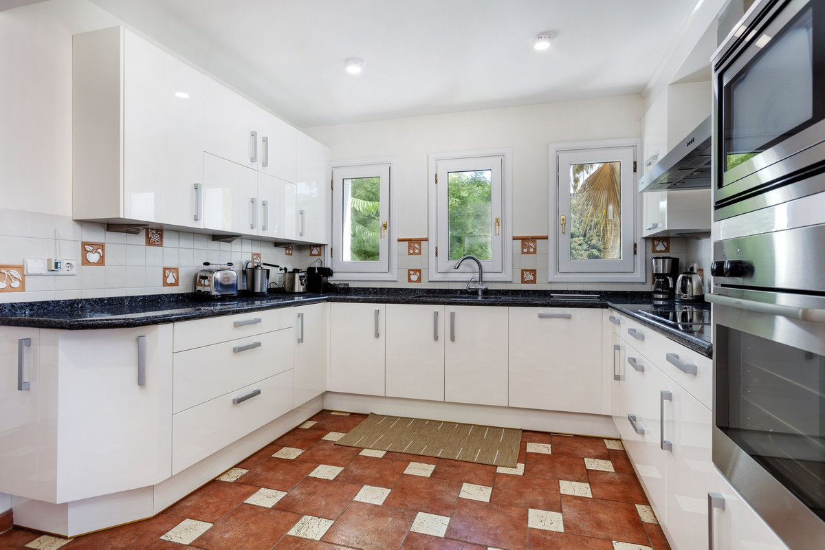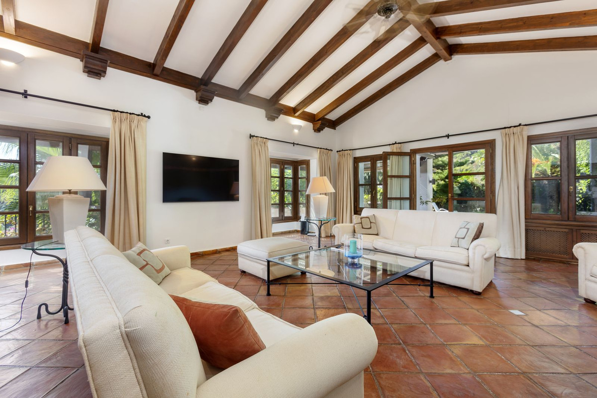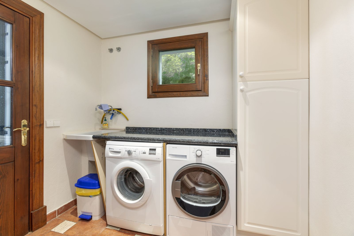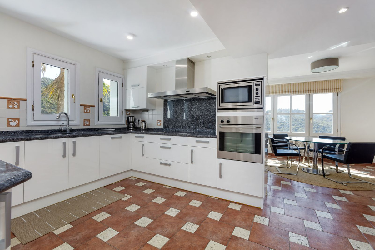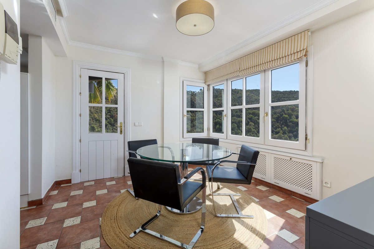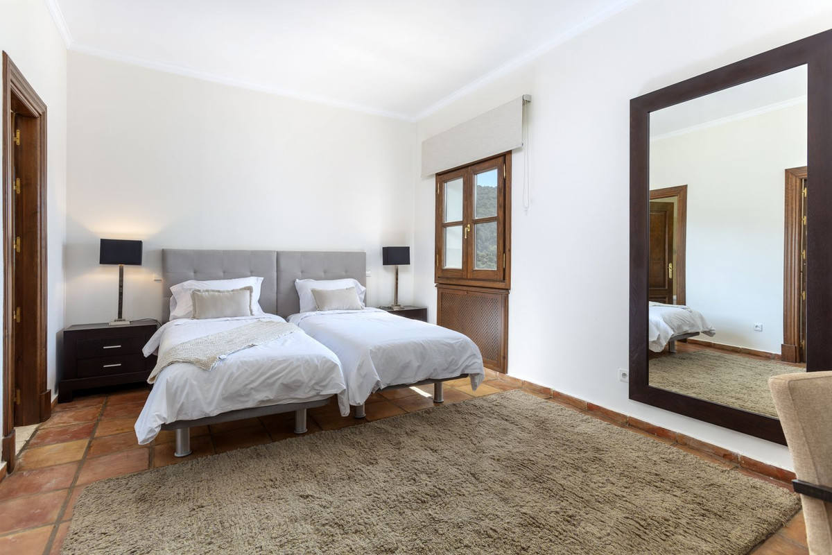 Electric gates lead you into the driveway which has parking for several cars and also a double garage. There is a utility room plus large kitchen that opens up into the breakfast room. huge dining room which leads into the impressive sitting room with high beamed ceilings and cosy fireplace - perfect for winter evenings. Opening up from the sitting room is a huge terrace and garden area with large pool which is heated - Ideal for all lovers of swimming on a winters day! The garden offers total privacy and total panoramic views accross the valley and village and to the protected forest areas and super exclusive La Zagaleta. Upstairs in the main house are 3 huge bedrooms plus 3 bathrooms and large walk in dressing rooms, and on the lower level is a separate guest apartment which is perfect for staff or teenager to stay in.