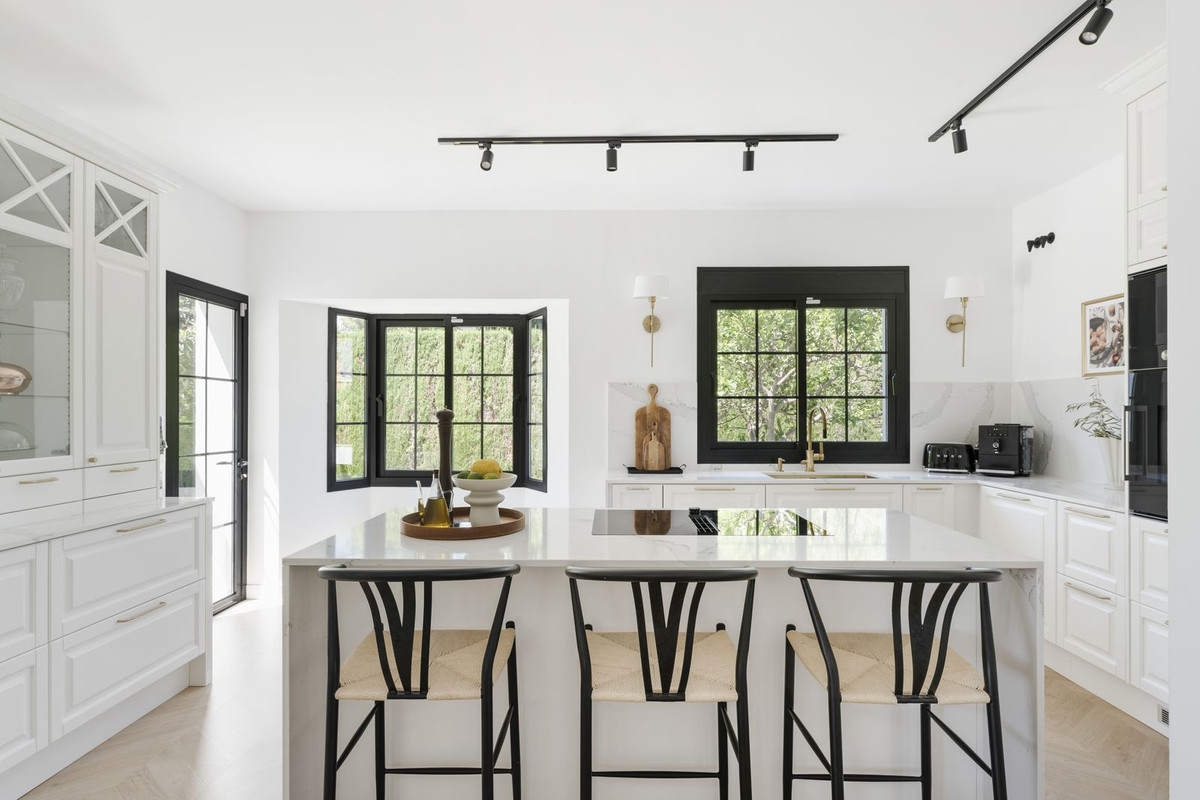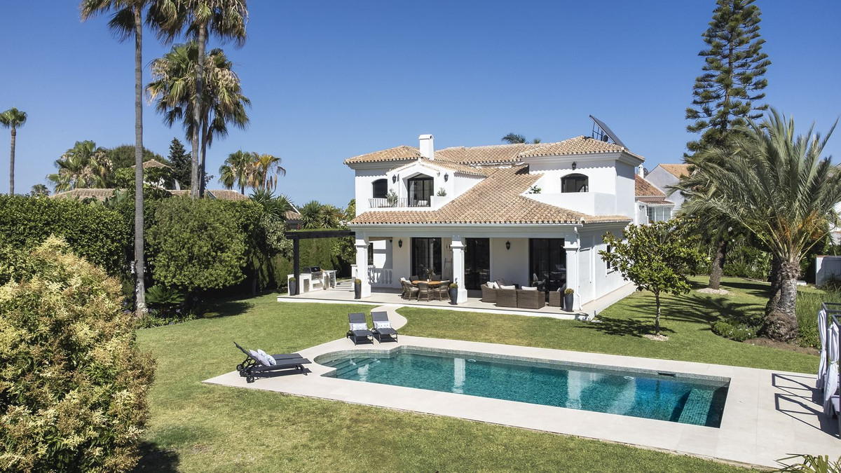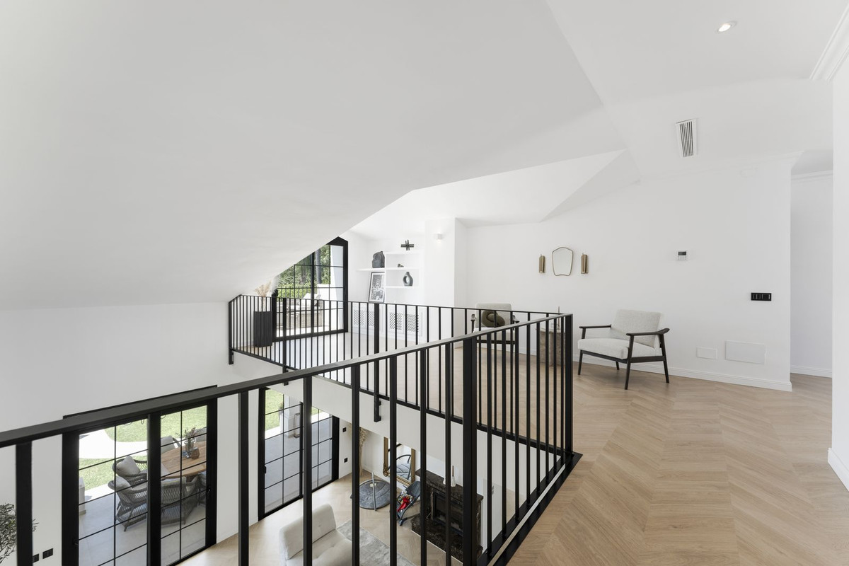 Welcome to this elegant villa that has recently gone through a total renovation located in Monte Biarritz. As you enter you are greeted by an abundance of light and space where the chosen materials blend perfectly. The generously sized ground floor of the villa has an open plan distribution with both formal and informal dining area, an office and a bedroom suite. The large terrace doors take you to the covered terrace, to the bbq area and out to the garden and heated pool. On the second floor you have the beautiful master suite, a relax area and 2 bedrooms sharing a bathroom. The basement area has been fitted with a home cinema, big laundry area, a family bathroom and the 5th bedroom, there is also direct access to the garage from here. Situated in a well established residential area with ammenities nearby and the beach is only a short distance away. A true gem of a property!!