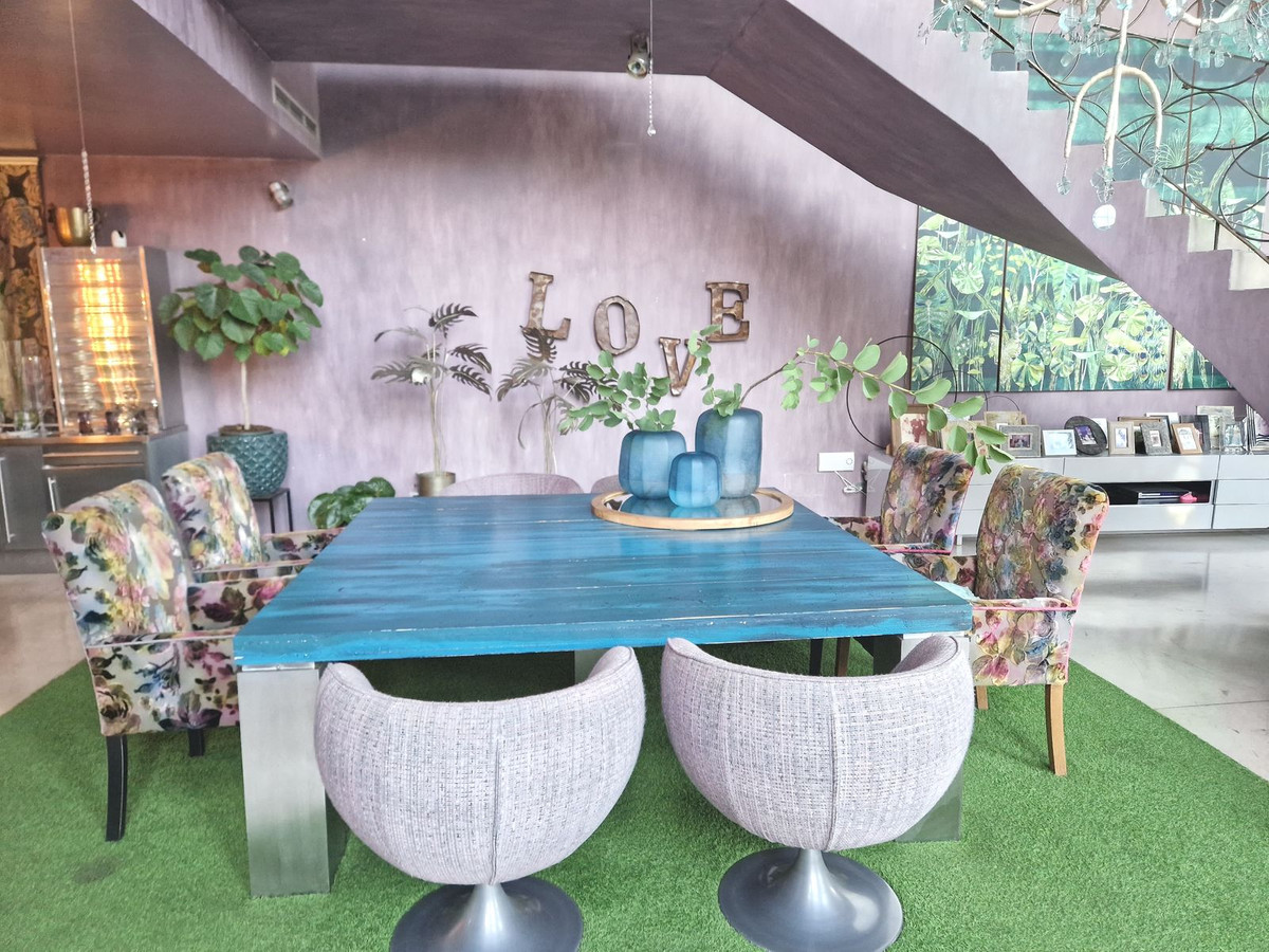 On the middle of the living there is a majestic staircase to top floor you will find a room before reaching the main room, it is a reading room with television and access to a good-sized terrace. The master bedroom with walk in closet and en-suite bathroom, has a nice views.