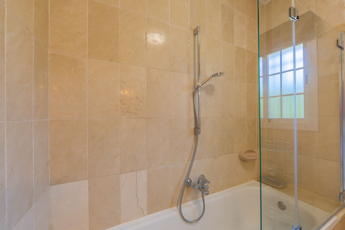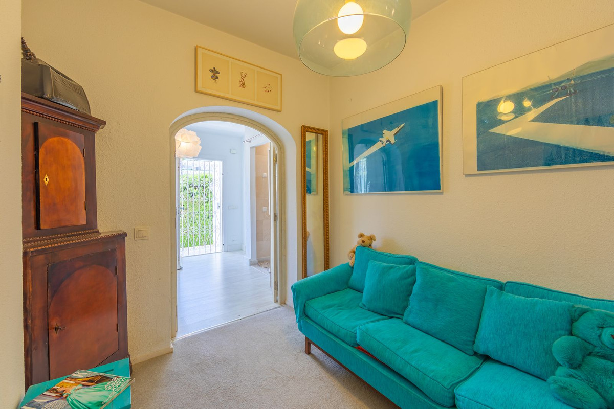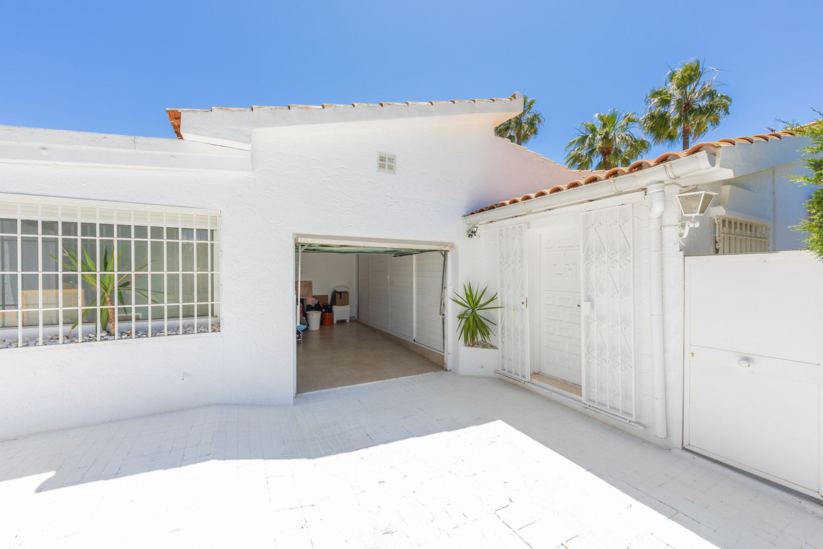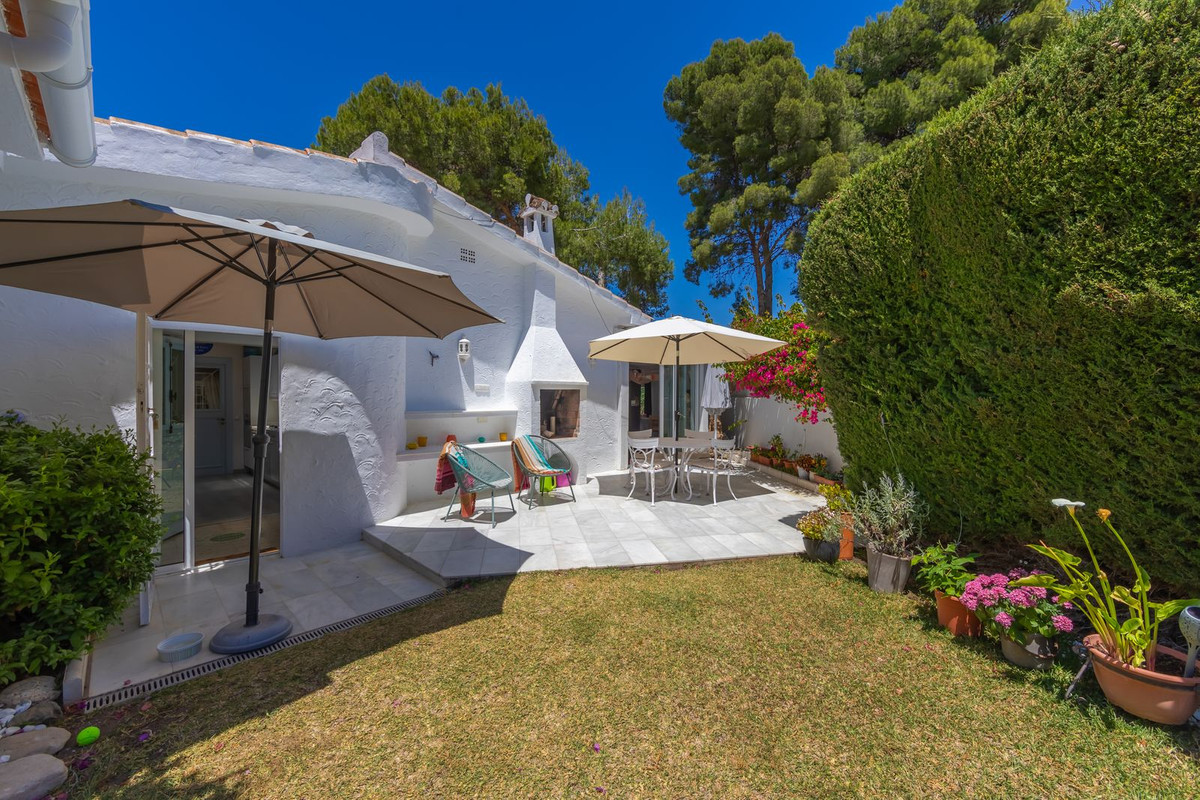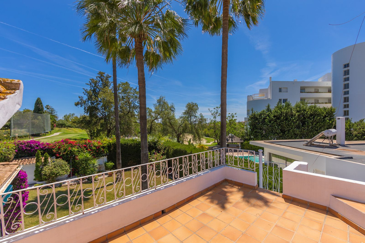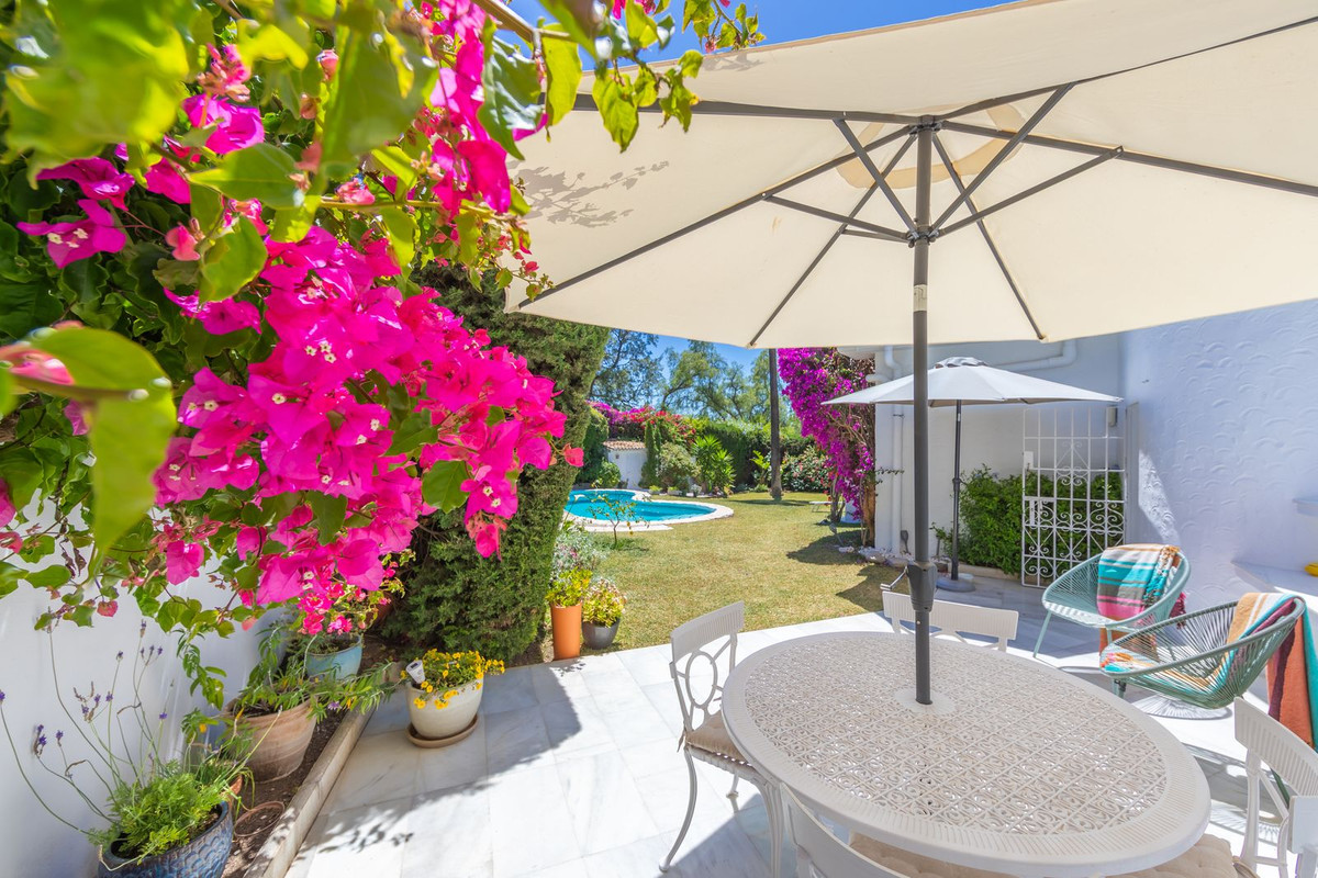 VILLA WITH ATTRACTIVE AND BEAUTIFUL MEDITERRANEAN CHARACTER, DISTRIBUTED ON A COMFORTABLE GROUND FLOOR AND LOCATED ON THE FIRST LINE OF GOLF, OF THE PRETIGIOUS REAL CLUB DE GOLF DE GUADALMINA. Located in a corner, in a cul de sac, located by the 18th Tee of the south . Enjoy a beautiful mature garden, very well maintained, with a multitude of trees and plants. LOCATED, 2 km from San Pedro de Alcántara and 6 km from Puerto Banús. Estepona and Marbella 15 min. Restaurants, Shops, and Leisure Areas just a 10-minute walk away and the beach a 5-minute drive away. Completely surrounded by Golf Courses and just a 3-minute walk from the golf clubhouse. (Golf share optional). Enjoy complete tranquility and privacy. South facing with great light and relaxing views of its excellently maintained mature garden and pool. It has a parking area for 2 cars at the entrance of the house plus a closed garage. In good condition and magnificently built, this property is distributed on a very comfortable single level. With a living room with high ceilings with wooden beams and direct access to the porch, garden and the kidney-shaped pool. The master bedroom en-suite with dressing room and direct access to the garden. A large and very bright kitchen with also high beamed ceilings and a dining area located next to the access to the parking area. The other good size bedrooms share 2 full bathrooms. The home has the option of separating an apartment by a door. From the cozy solarium enjoy relaxing views of the garden, golf courses and mountains. It also features a semi-basement with access from outside the house that could be used as a gym, games room, etc. It has great possibilities to change its distribution. We highly recommend visiting this fantastic property.