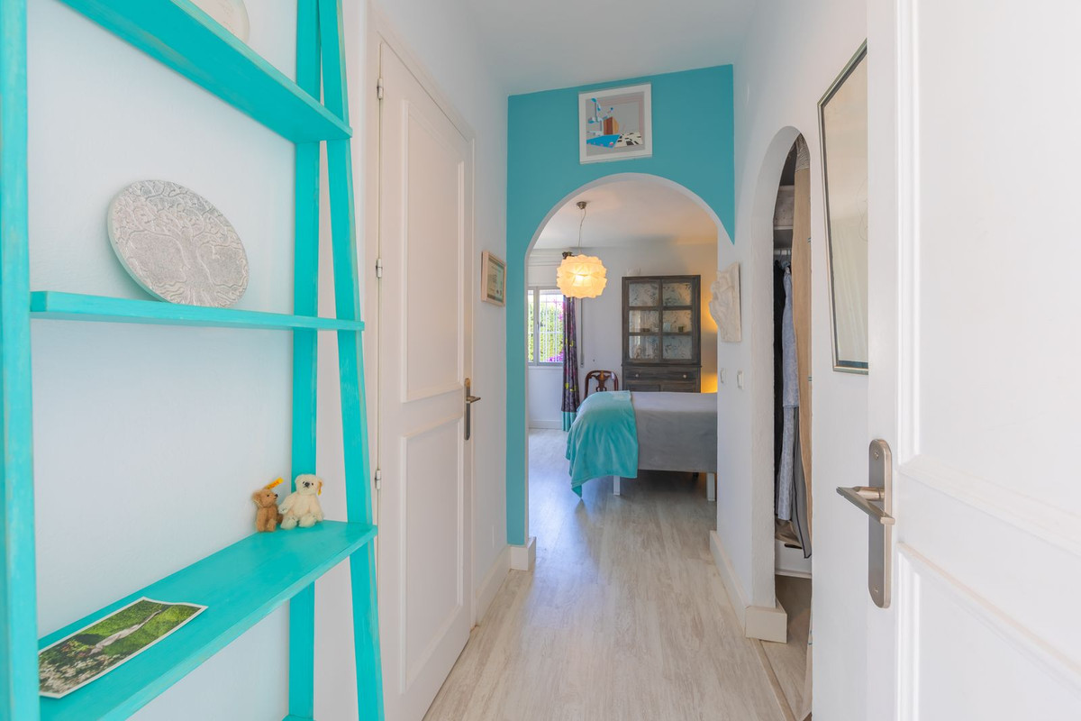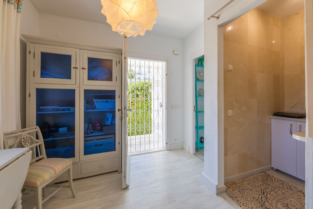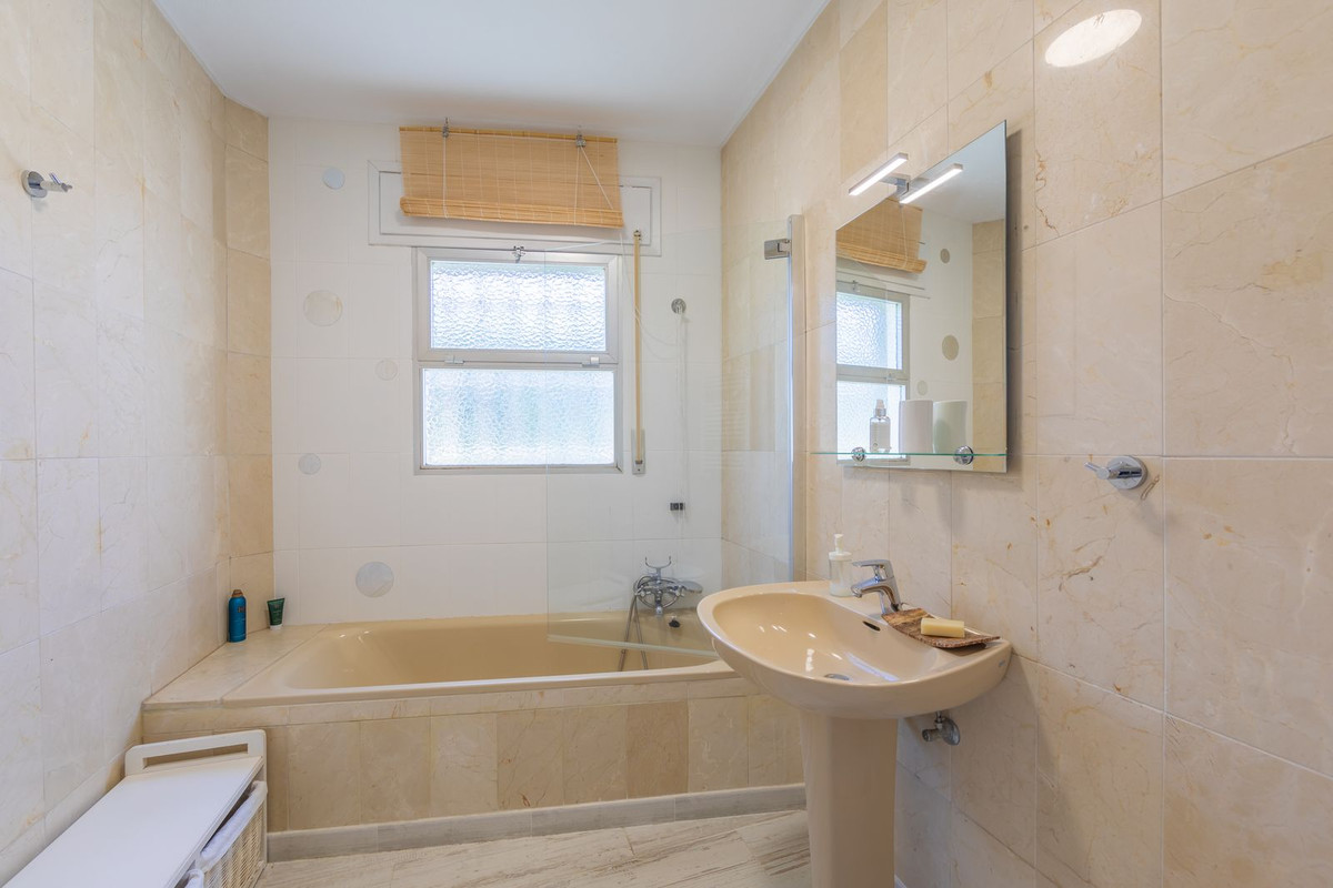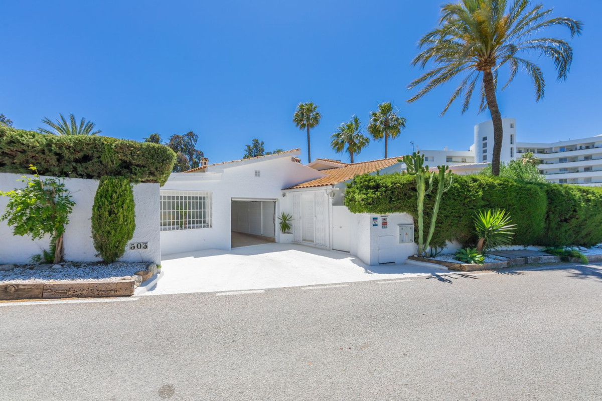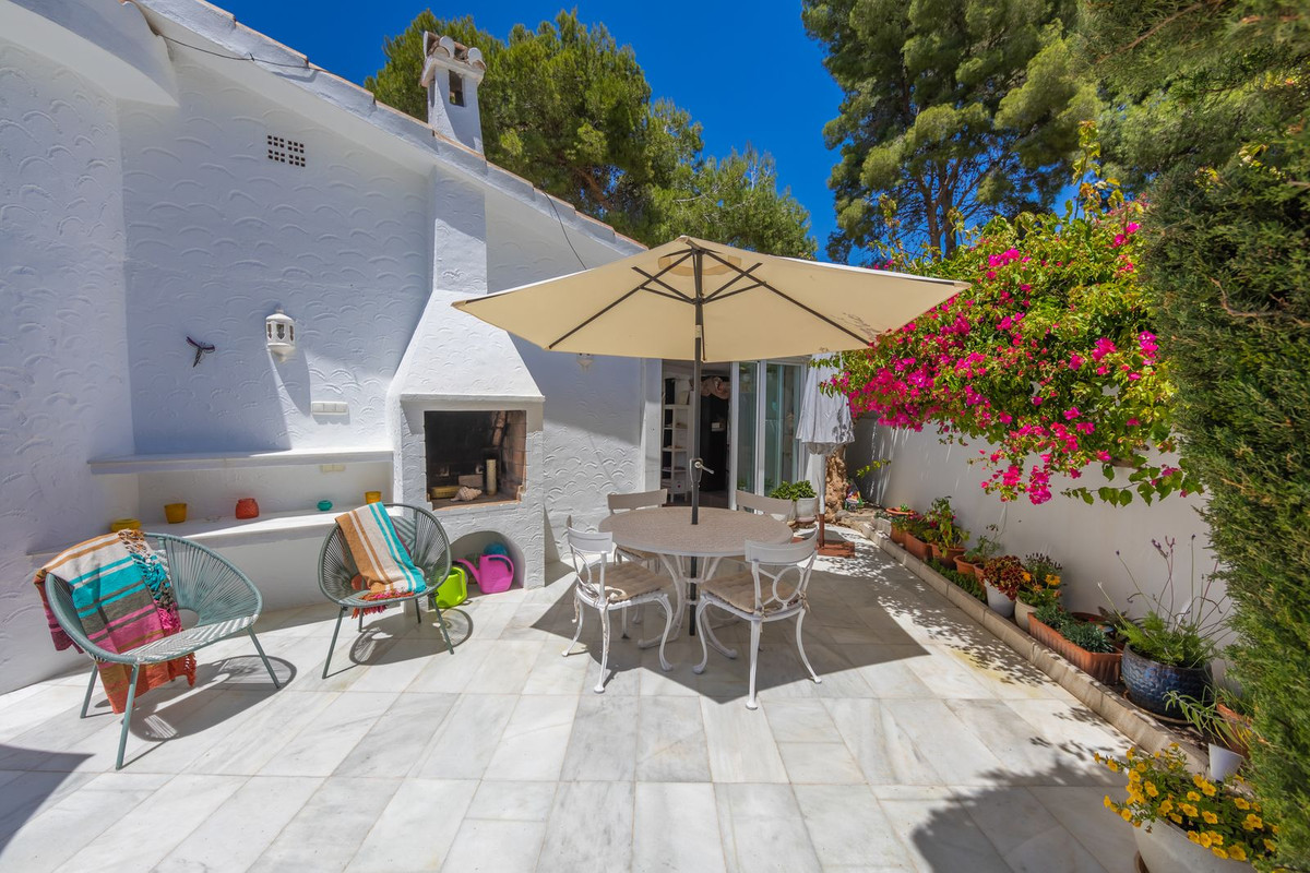 VILLA WITH ATTRACTIVE AND BEAUTIFUL MEDITERRANEAN CHARACTER, DISTRIBUTED ON A COMFORTABLE GROUND FLOOR AND LOCATED ON THE FIRST LINE OF GOLF, OF THE PRETIGIOUS REAL CLUB DE GOLF DE GUADALMINA. Located in a corner, in a cul de sac, located by the 18th Tee of the south . Enjoy a beautiful mature garden, very well maintained, with a multitude of trees and plants. LOCATED, 2 km from San Pedro de Alcántara and 6 km from Puerto Banús. Estepona and Marbella 15 min. Restaurants, Shops, and Leisure Areas just a 10-minute walk away and the beach a 5-minute drive away. Completely surrounded by Golf Courses and just a 3-minute walk from the golf clubhouse. (Golf share optional). Enjoy complete tranquility and privacy. South facing with great light and relaxing views of its excellently maintained mature garden and pool. It has a parking area for 2 cars at the entrance of the house plus a closed garage. In good condition and magnificently built, this property is distributed on a very comfortable single level. With a living room with high ceilings with wooden beams and direct access to the porch, garden and the kidney-shaped pool. The master bedroom en-suite with dressing room and direct access to the garden. A large and very bright kitchen with also high beamed ceilings and a dining area located next to the access to the parking area. The other good size bedrooms share 2 full bathrooms. The home has the option of separating an apartment by a door. From the cozy solarium enjoy relaxing views of the garden, golf courses and mountains. It also features a semi-basement with access from outside the house that could be used as a gym, games room, etc. It has great possibilities to change its distribution. We highly recommend visiting this fantastic property.
