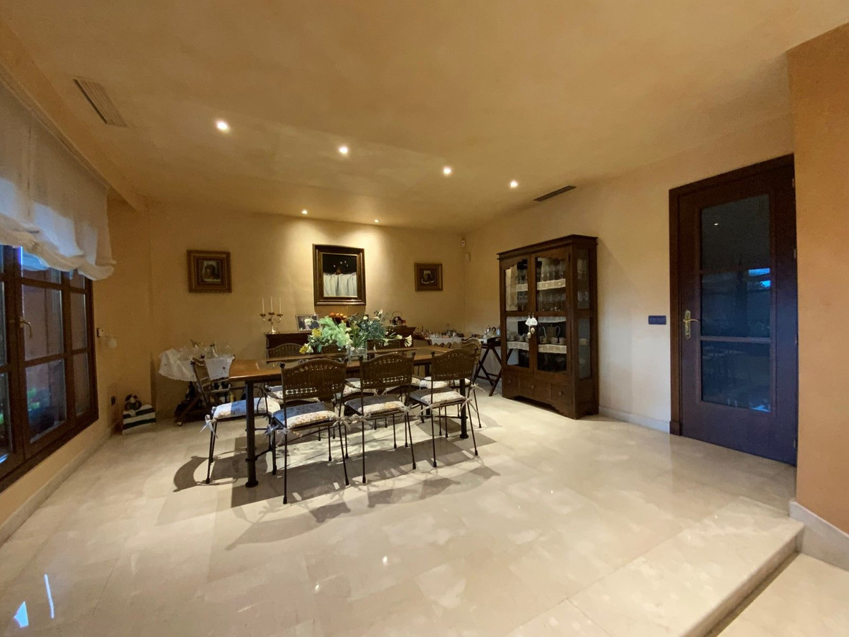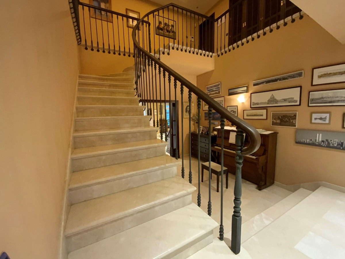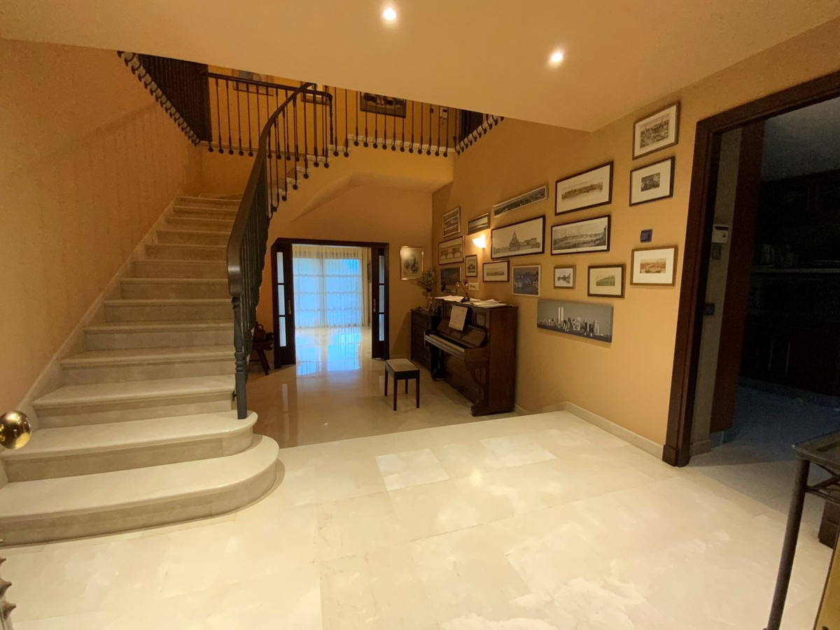 Beautiful and spacious villa located in a sought after area, a ten minute walk from the center of Marbella. In its surroundings we can locate schools, a playground, Mercadona, a restaurant, as well as a 5-star hotel, two minutes from the bus station, as well as perfectly communicated with the entrance of the highway both towards Puerto Banús and towards Málaga. The house was built in the year 2000 and in addition to valuing its design and qualities, such as hot and cold air conditioning, as well as underfloor heating throughout the house, independent in each room. Iroko wood closures with Climalit windows and automatic and security blinds. Infinity pool. Among many other no less interesting details, I would emphasize its wonderful open views towards the sea and the mountains. House composed of three levels of which the lower one is a large space of 300 m². Stately access to the house. It is worth the visit.
