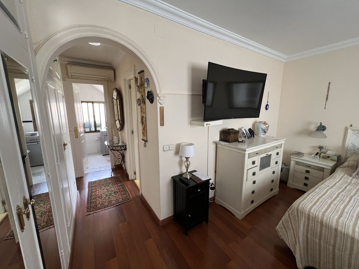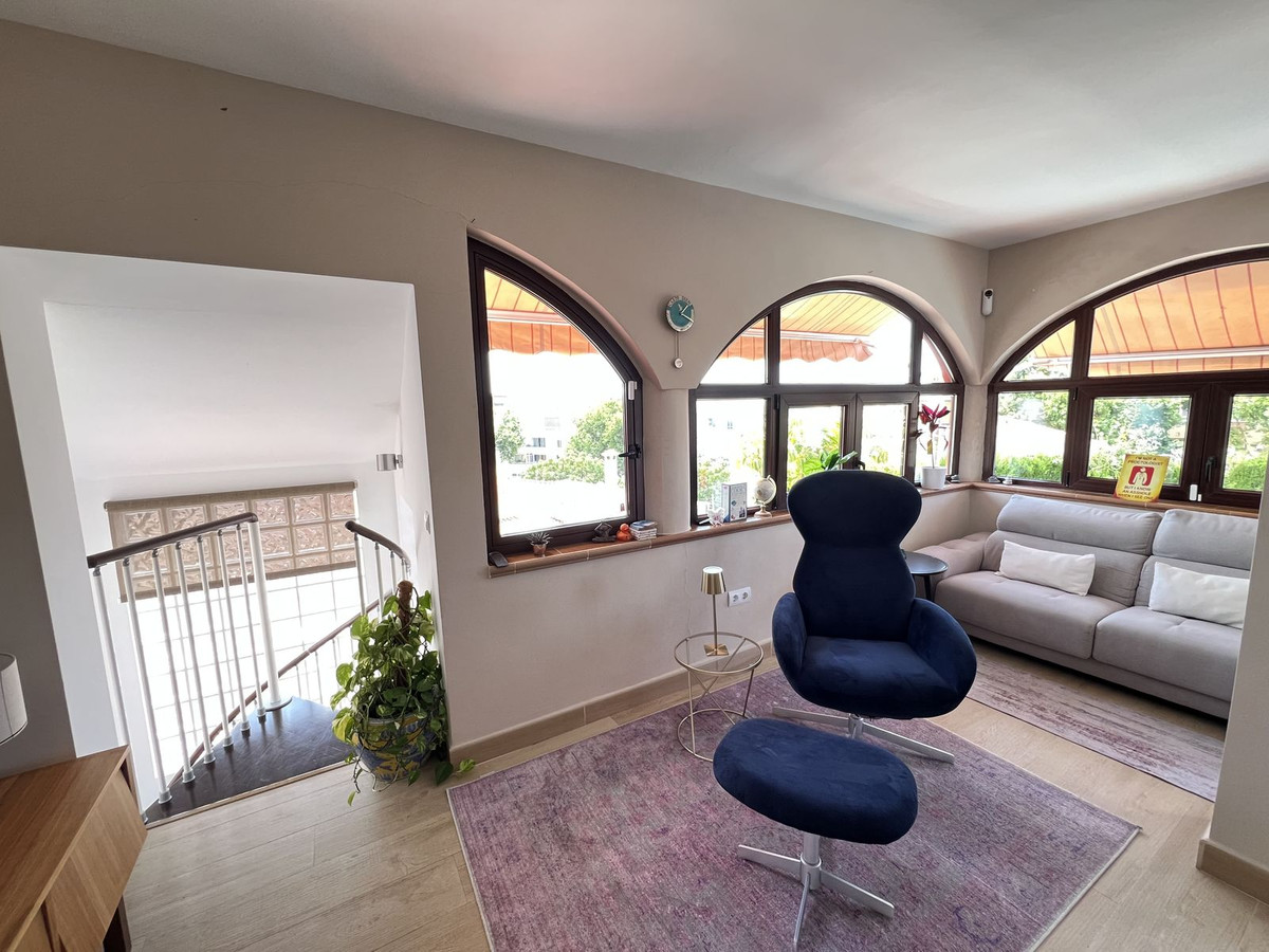 Charming villa located in the heart of Marbella, just a 15-minute walk from the beach and the promenade. This well-maintained property is close to supermarkets, schools, and only 1.5 km from the La Cañada shopping center. Set in a quiet and secure residential area with friendly neighbors, it enjoys lovely sea views and plenty of natural light throughout the day.