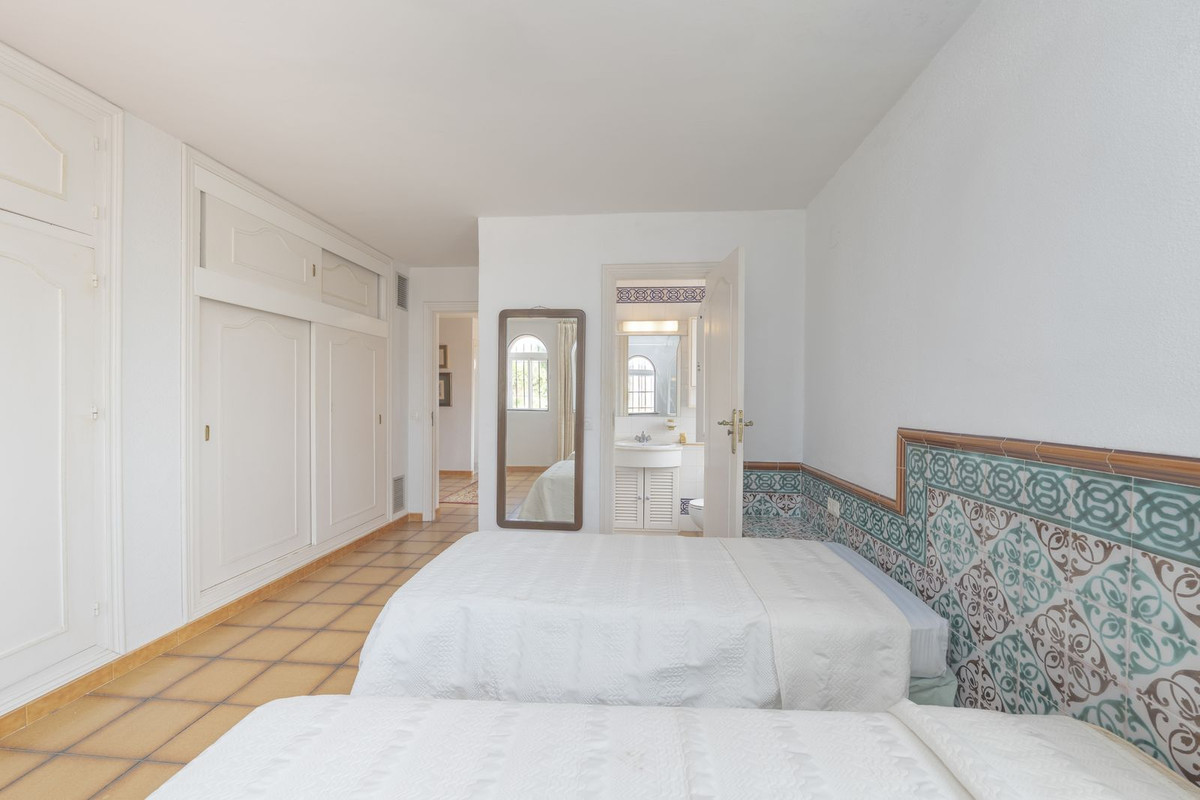 Detached Villa at the renowned and consolidated residential area of El Mirador de Marbella. A house designed for relax and enjoyment, near schools, supermarkets and just a stone's throw away from the A7. With the enchanting Andalusian scent, and a 823sqm plot, the two level dwelling displays a fully fitted kitchen with pantry and independent entrance, a guest toilette, the cosy living room with access to the covered 20sqm terrace and garden plus an adjacent dining room; besides, two ample bedrooms that share a bathroom with Sauna. On the upper level, the main bedroom, with bathroom en suite, lounge and small office like corner adding a second 10sqm terrace with a glimpse of the sea. This charming traditional style property boasts, eventually, a nice and sunny pool and a BBQ area conveniently situated and covered. Private parking also covered. Charm and details for this property with an enviable location, within Marbella town area, with plenty of amenities and leisure offer at hand, and yet, tranquil and private, as one could expect from a property of this level.