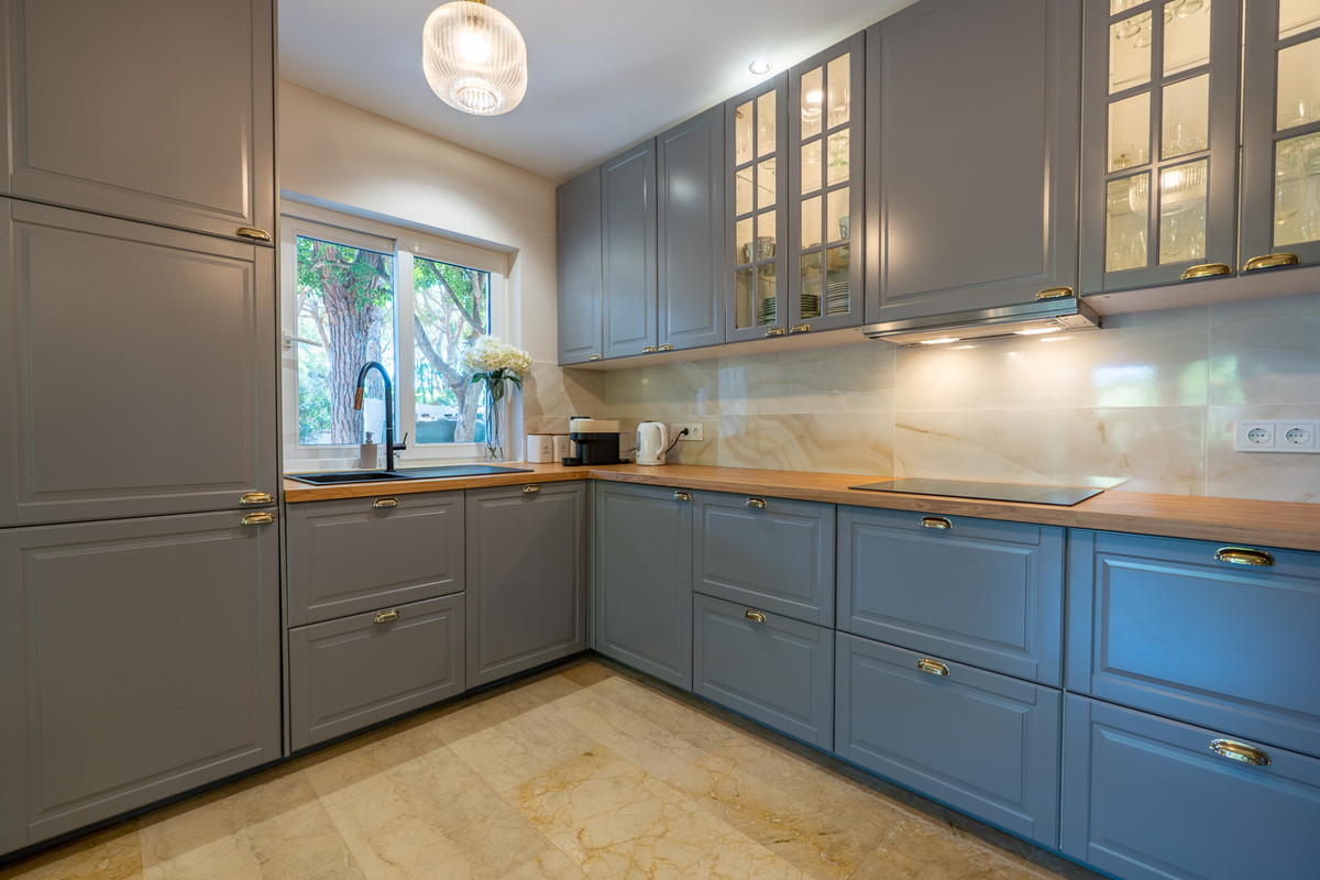 Inside, the property features four spacious bedrooms and three modern bathrooms. The main living area is bright and open-plan, seamlessly connecting the lounge, dining area, and a fully equipped contemporary kitchen. High-quality finishes include porcelain and stone flooring, fitted wardrobes, and a combination of central heating and air conditioning. The property is sold fully furnished, in excellent condition, and with optional furniture upgrades available.