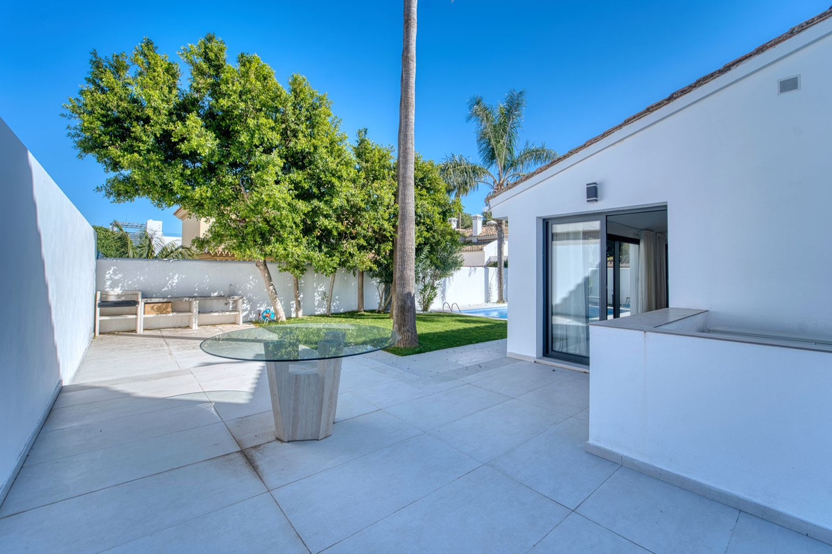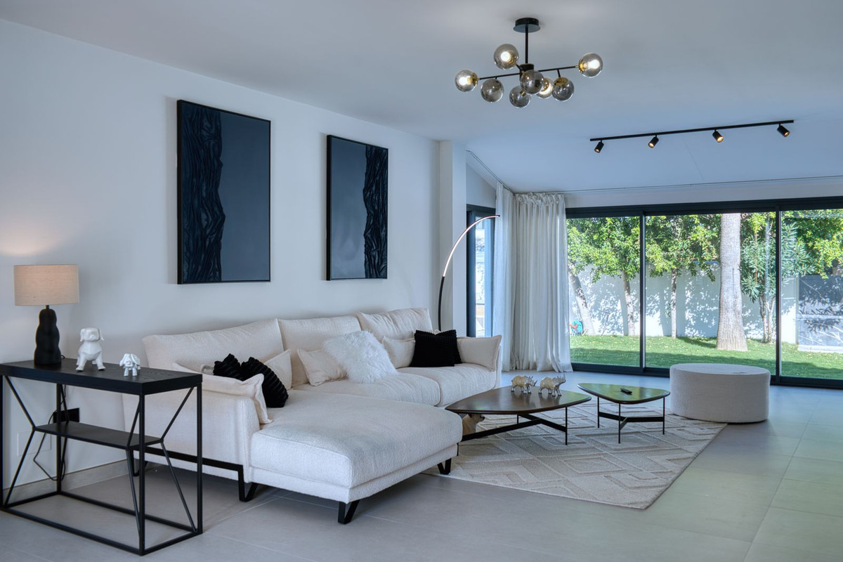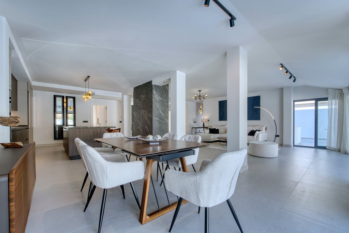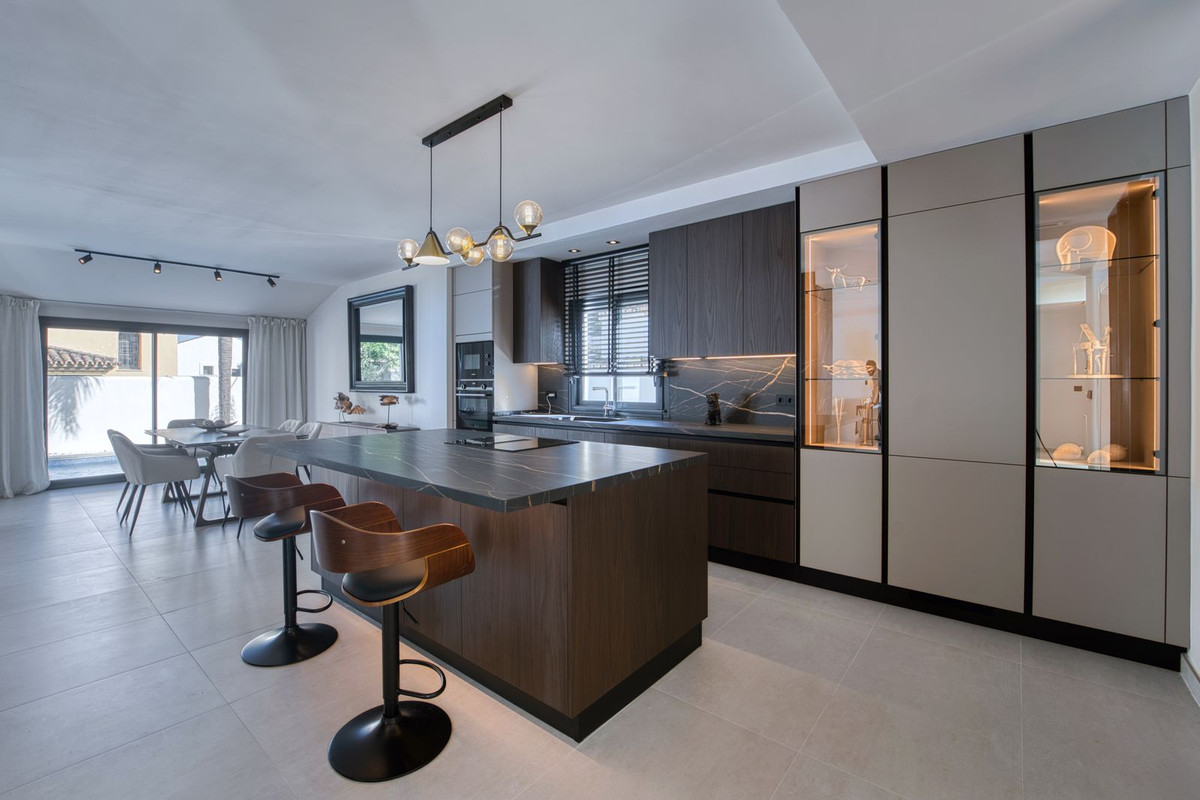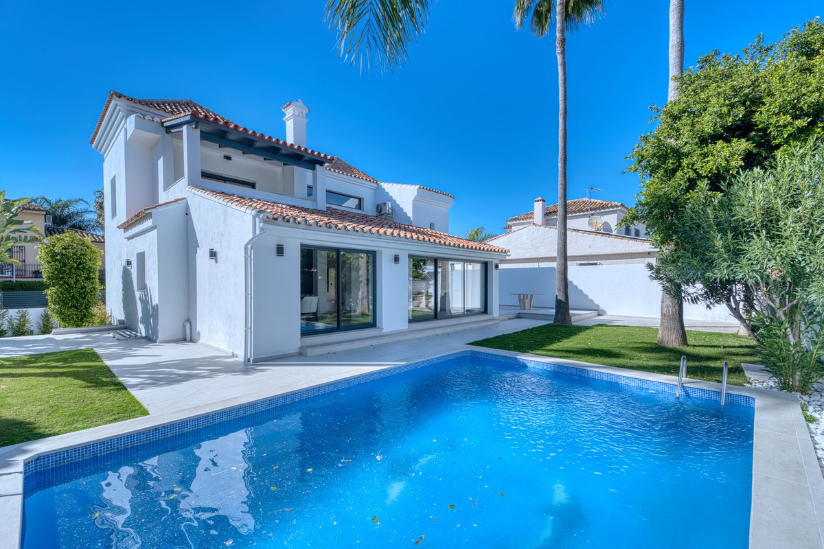 Fully refurbished luxury detached villa for sale and rent in Nueva Andalucía, Marbella. Renovated in 2025, the property offers a modern design distributed over three floors plus a versatile basement, with a total built area of 355 m².