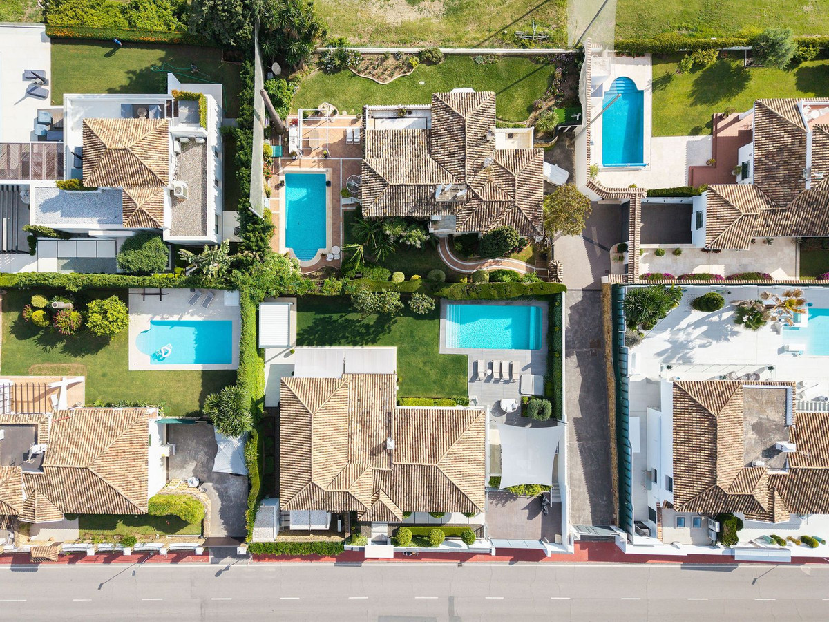 Welcome to this great fully refurbished family villa in the Golf Valley. As you enter the living, dining and open plan kitchen you are greeted with an abundance of light and space. From here you have direct access to the beautifully manicured gardens, gazebo, heated pool and open terraces with shaded large sails for extra comfort. The house is well thought out creating private space on the master level and then you have 2 wings ideal for guest. There are 5 bedrooms and 4 bathroms, 3 of which are onsuite. On the living room level you have a laundry area and a guest toilet near by. The house was completely refurbished 6 years ago using natural colors to create a homely feeling. The house is complete with underfloor heating throughout, airzone ac systems both powered by an aerothermic system. This house is also ideal as a rental property due to its 5 bedrooms and distribution.