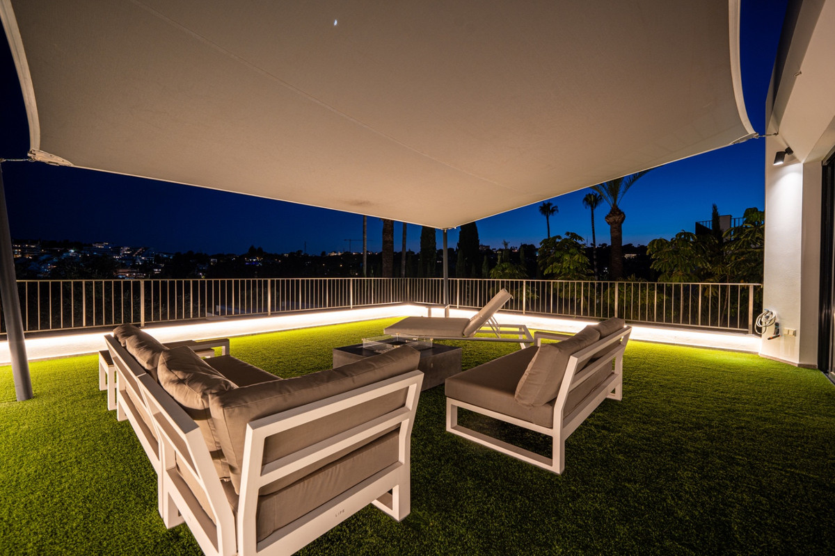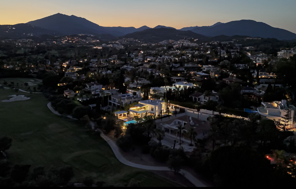 This is a luxury home in Marbella’s most exclusive gated community. The villa is spread over three levels and combines modern design with Mediterranean charm. It offers panoramic views of the golf course and mountains, with a south-facing position that ensures natural light throughout the day. Inside, the home features spacious open-plan living, a contemporary kitchen, and seamless access to the terrace with pool, jacuzzi, and outdoor kitchen.