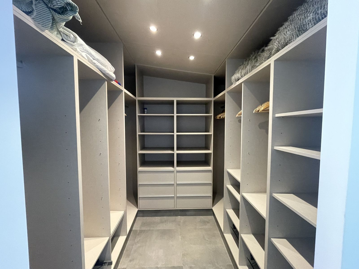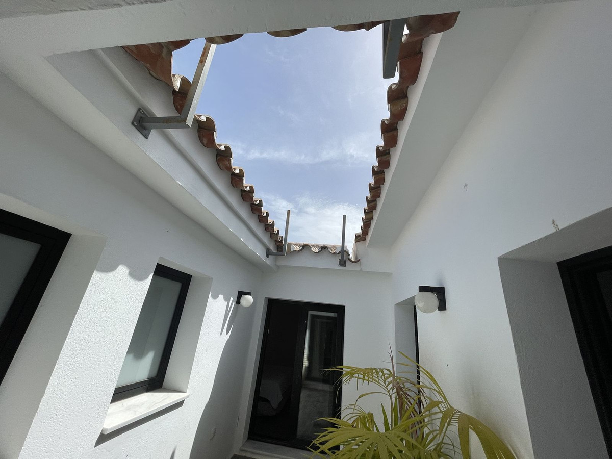 The villa has three bedrooms, each with an en-suite bathroom, arranged around a charming interior patio that provides a touch of serenity and privacy. It also has a laundry area and built-in wardrobes that add functionality to the space.