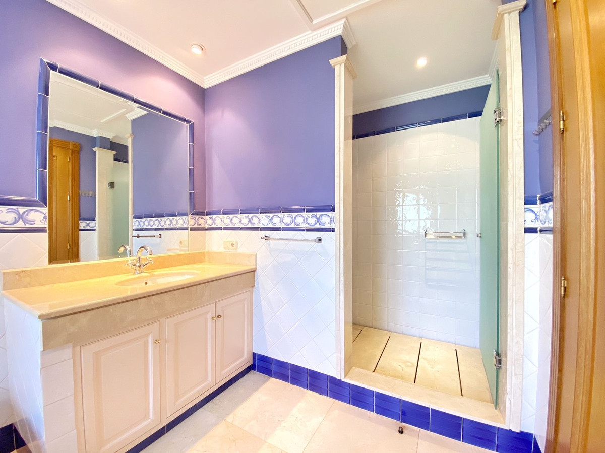 On the upper floor we find 4 large bedrooms. two of them with access to a fantastic and sunny terrace facing south and open views over the gardens of the urbanization. Also sea views.