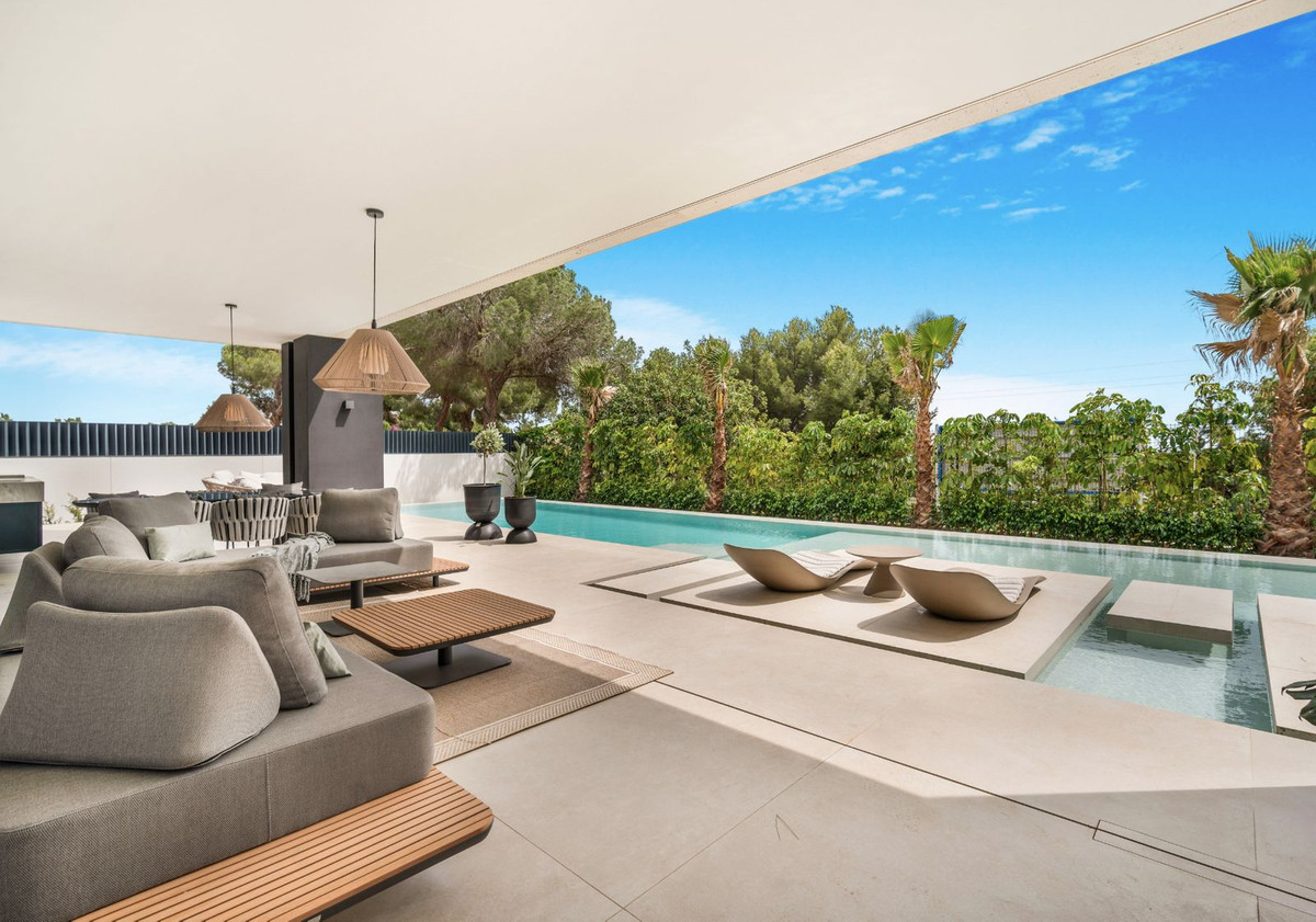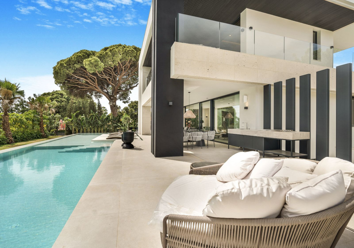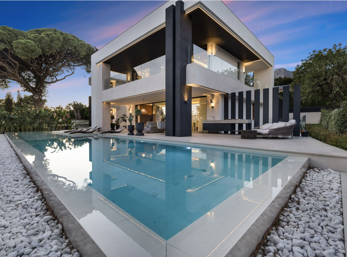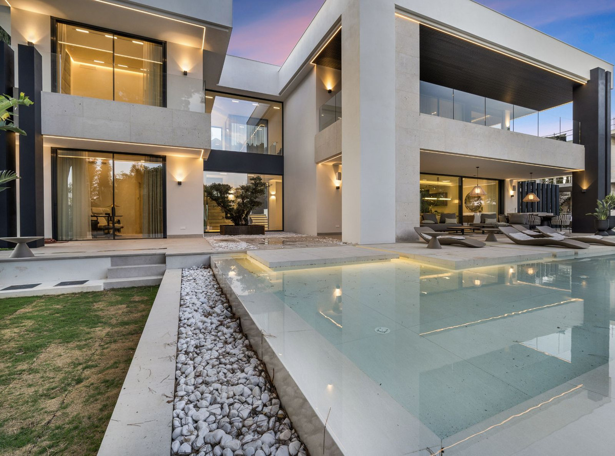 Welcome to this stunning brand new 5-bedroom luxury villa in the heart of Marbella's coveted Golden Mile, specifically in Rocío de Nagüeles. This exclusive property seamlessly blends elegant design with modern amenities, offering unparalleled luxury living in a prime location.