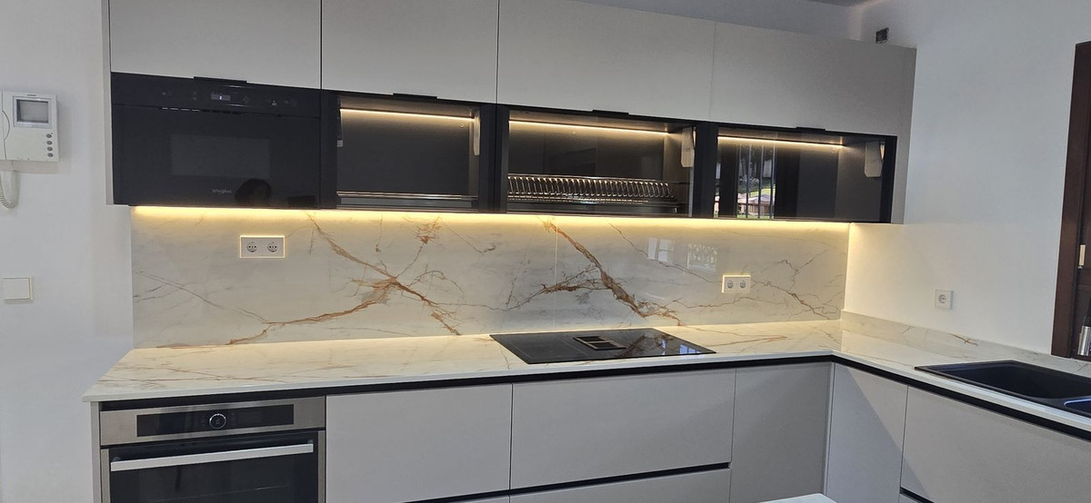 This beautifully renovated villa is located in the highly desirable gated community of La Capellania Hill Club, on the prestigious Golden Mile. Spanning nearly 500 sqm across three floors, all connected by an elevator, the villa boasts six en-suite bedrooms. The spacious living and dining areas offer stunning views of the lush gardens and the sea, while the large, fully renovated kitchen features a separate dining area.