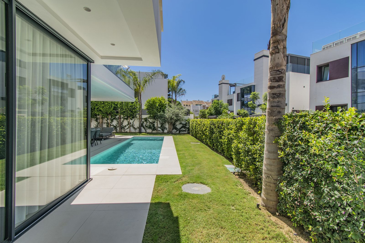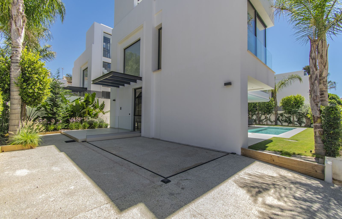 MODERN VILLA 100 METERS FROM THE BEACH NEXT TO PUERTO BANUS Contemporary style villa with a privileged location just a few meters from the promenade and the beach and just a few minutes walk from Puerto Banus and the Golden Mile. The property is distributed over four floors, has an elevator that connects all floors, has a total of four good-sized bedrooms, four bathrooms plus toilet, living room with open kitchen, large terrace, huge solarium, the basement has a large garage, cinema room, summer room...etc. Externally the property has a porch and garden area, private pool and parking. An ideal property for clients who want to enjoy a modern style property ready to move into in a privileged location next to the beach and just a few minutes from Puerto Banus.