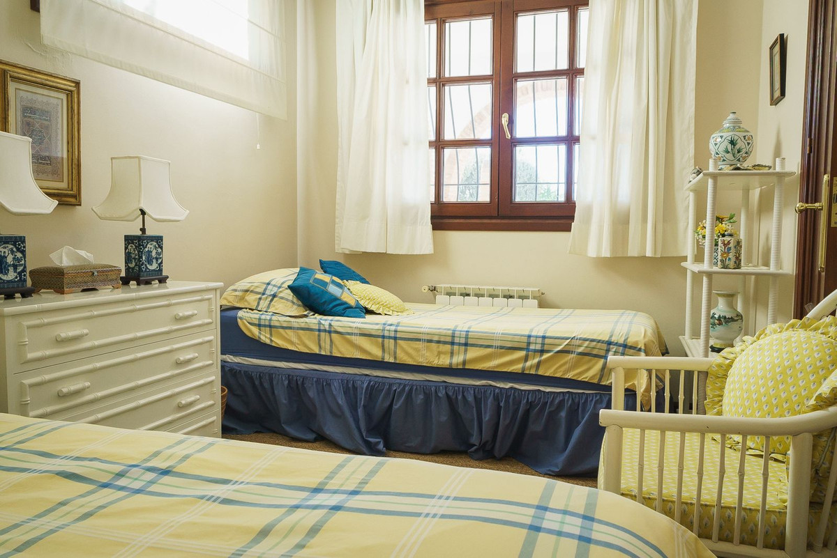 The garden and pool area can be accessed from the lower level or via a staircase from the courtyard. The pool area is a true highlight, offering uninterrupted views of the mountains, the Mediterranean, Gibraltar, and Morocco. A dedicated BBQ area adds to its charm, making it the perfect spot for outdoor entertaining.