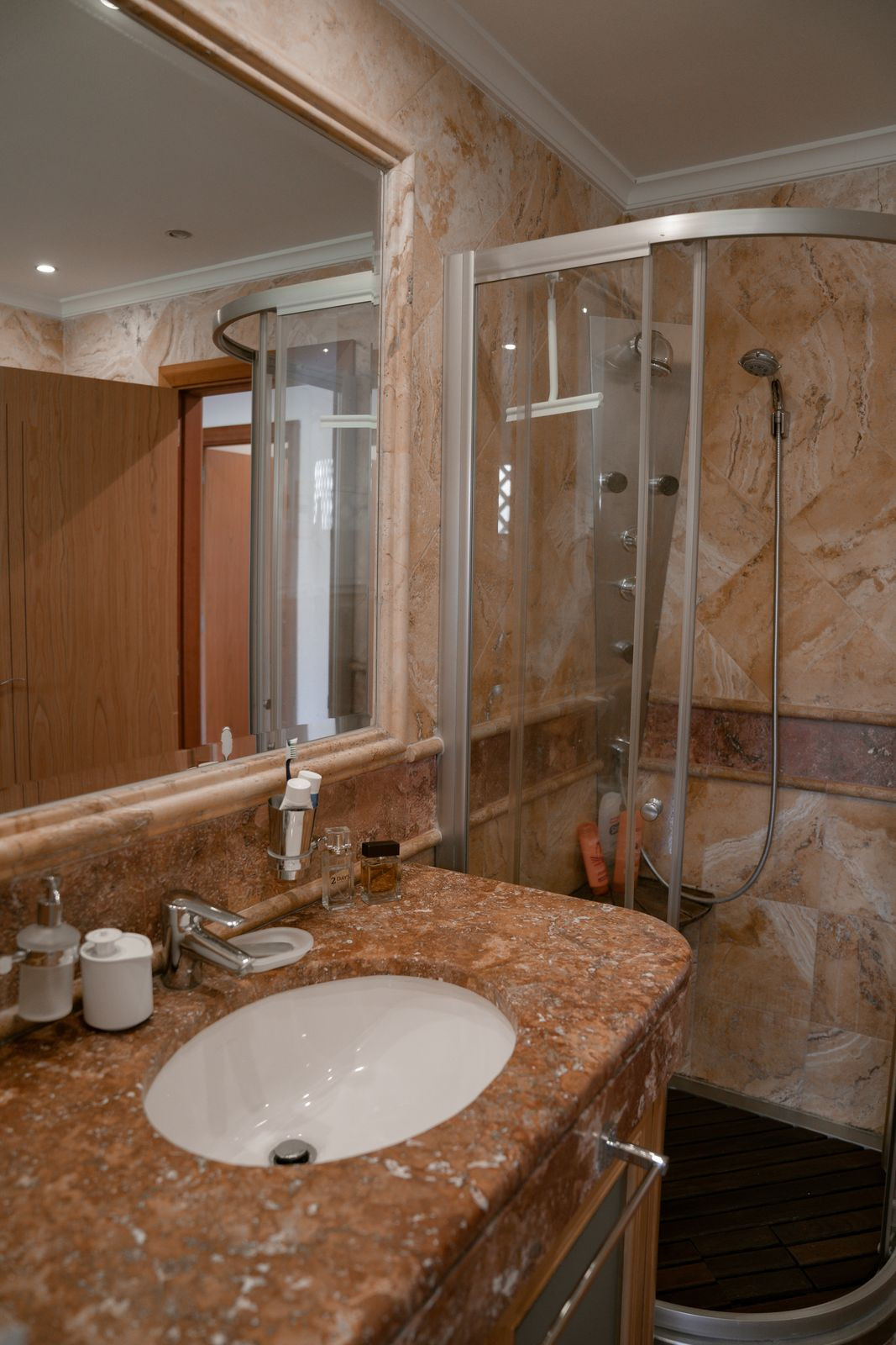 The complex offers exclusive amenities such as an indoor and outdoor pool, a modern gym, a spa with a sauna and hydrotherapy, a restaurant, a bar, and 24-hour security.