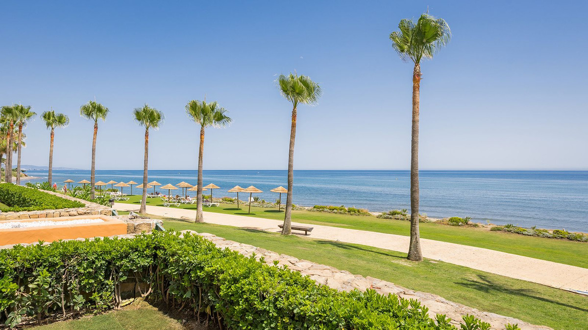 Situated in the prestigious beachfront development of Los Granados del Mar in Estepona East, this exceptional ground-floor apartment blends refined luxury with unbeatable coastal living. Boasting panoramic sea views and direct access to the beach, the property offers a seamless combination of elegance, comfort, and location. With a total built area of 273 m²—including 186 m² of beautifully renovated interior space and an expansive 87 m² private terrace—this home is ideal for discerning buyers seeking a permanent residence, a high-end holiday retreat, or a sound investment on the Costa del Sol.