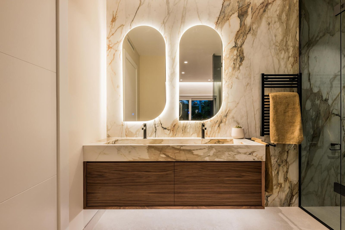 This south facing 3 bedroom and 3-bathroom ground floor apartment has been fully renovated to the highest standards and offers delightful views of the lush landscaped gardens. With a total built area of 142 m2 and a spacious private terrace of 60 m2, this apartment provides an ample and luxurious open living space. It features elegant floors, a brand-new designer kitchen with Miele appliances, a Bang & Olufsen sound system, tailormade wardrobes and an electric fireplace. It is ideal for people who are looking for refined luxury beachfront living at its best. The apartment is located in the amazing high- end urbanization of Torre Bermeja, a gated complex with 24-hour security which is well known for its mature landscaped gardens and its amazing "5 star" facilities such as 2 outdoor pools, 2 gyms, an indoor pool and 2 saunas. It has direct access to the beach and promenade and several amazing restaurants are within walking distance. The apartment comes with a convenient underground parking and a storage room.