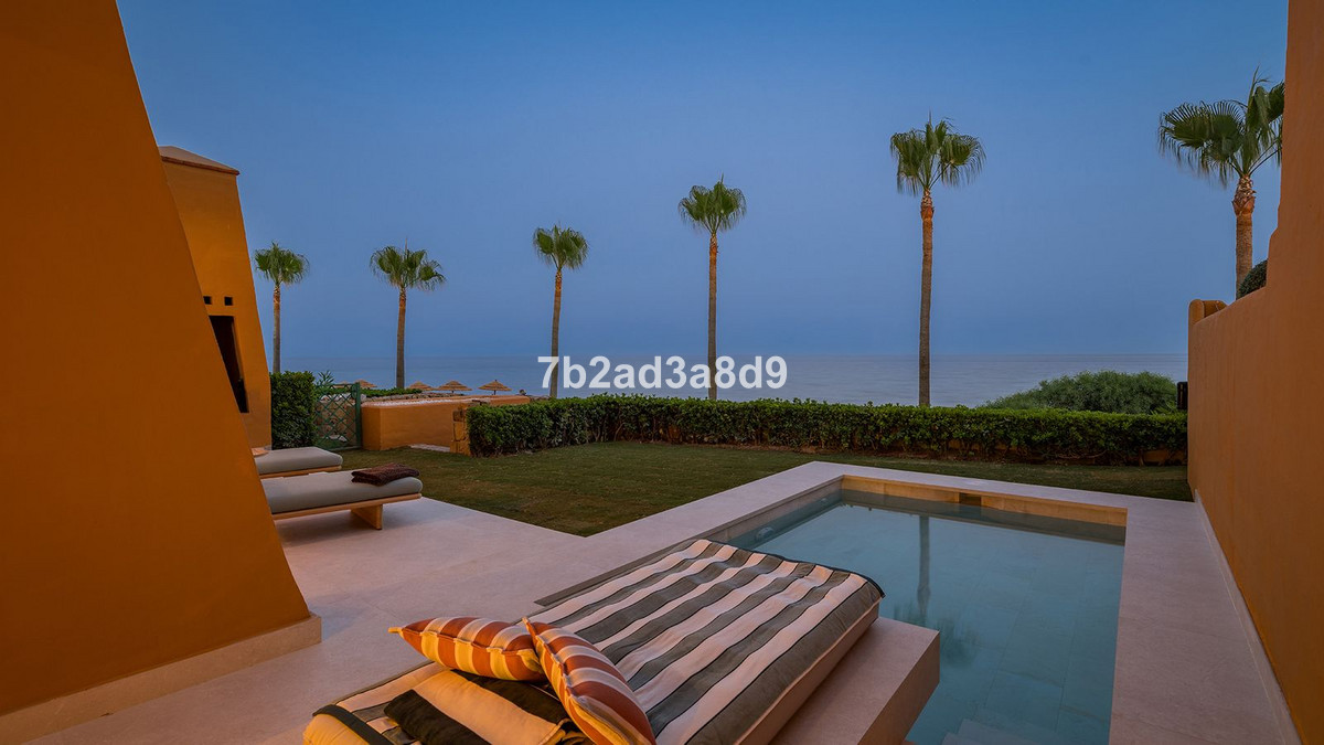 This is a fully renovated, southwest-facing beachfront apartment in the prestigious Los Granados del Mar, offering a rare blend of refined elegance, cutting-edge design and lifestyle-enhancing features. Situated on the New Golden Mile between Marbella and Estepona, this exceptional residence enjoys panoramic Mediterranean Sea views from an expansive 87 m² terrace, complete with a private swimming pool and serene private garden – ideal for al fresco dining, entertaining or simply unwinding in total privacy.