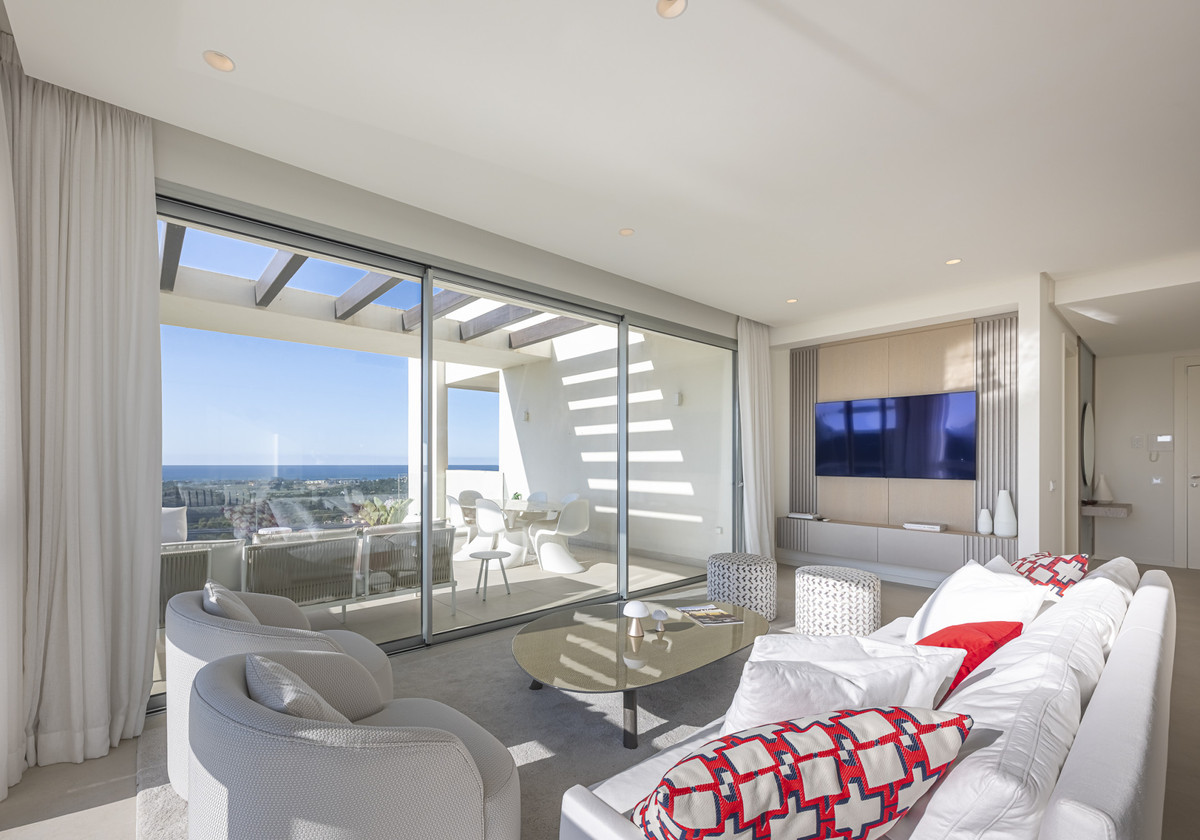 HIGHLIGHTS Exquisite apartment located in the prestigious Marbella Club Hills development. A 5-star residence set within a privileged natural environment, in collaboration with the iconic Marbella Club Hotel. With wide, unobstructed panoramic views of the Mediterranean and Africa, it is surrounded by an impressive mountainous landscape. This property offers a sophisticated lifestyle in perfect harmony with nature, just minutes from Puerto Banús and Marbella.