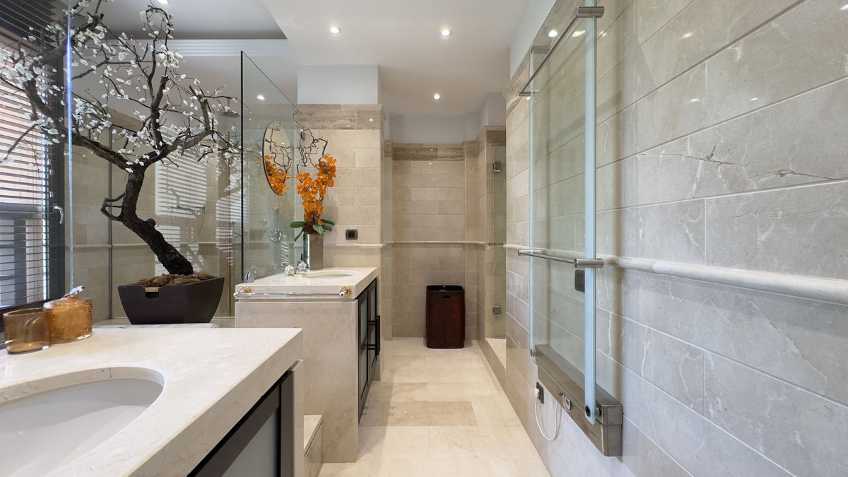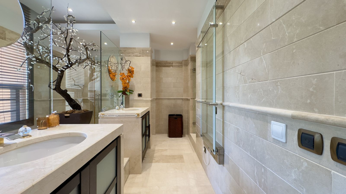 Available for long-term rent, this exquisite apartment is situated directly on the beachfront in one of the most prestigious developments of the Costa del Sol - Laguna de Banús, offering a rare combination of privacy, luxury, and unbeatable location just steps from the heart of Puerto Banús. The residence features 3 elegant bedrooms, each with its own en-suite bathroom and finished to the highest standards, creating a sense of refined comfort throughout. The spacious living areas are enhanced by top-quality materials, tasteful furnishings, and floor-to-ceiling sliding doors that lead to a generous private terrace with the direct sea view — the ideal space to enjoy breathtaking views of the Mediterranean, entertain guests, or simply relax in absolute peace. With 5 bathrooms in total, two underground parking spaces, your own storage room, and 24-hour security, this home is perfectly equipped for a secure and comfortable lifestyle. The complex also offers lush communal gardens, a heated outdoor pool, children’s pools, and the tranquil atmosphere of a luxury beachfront retreat. Additionally, it's worth noting that the gym area in the complex is undergoing a complete renovation. Once finished, it will feature brand-new facilities equipped with high-end Technogym machines, offering residents a modern and fully upgraded fitness space.