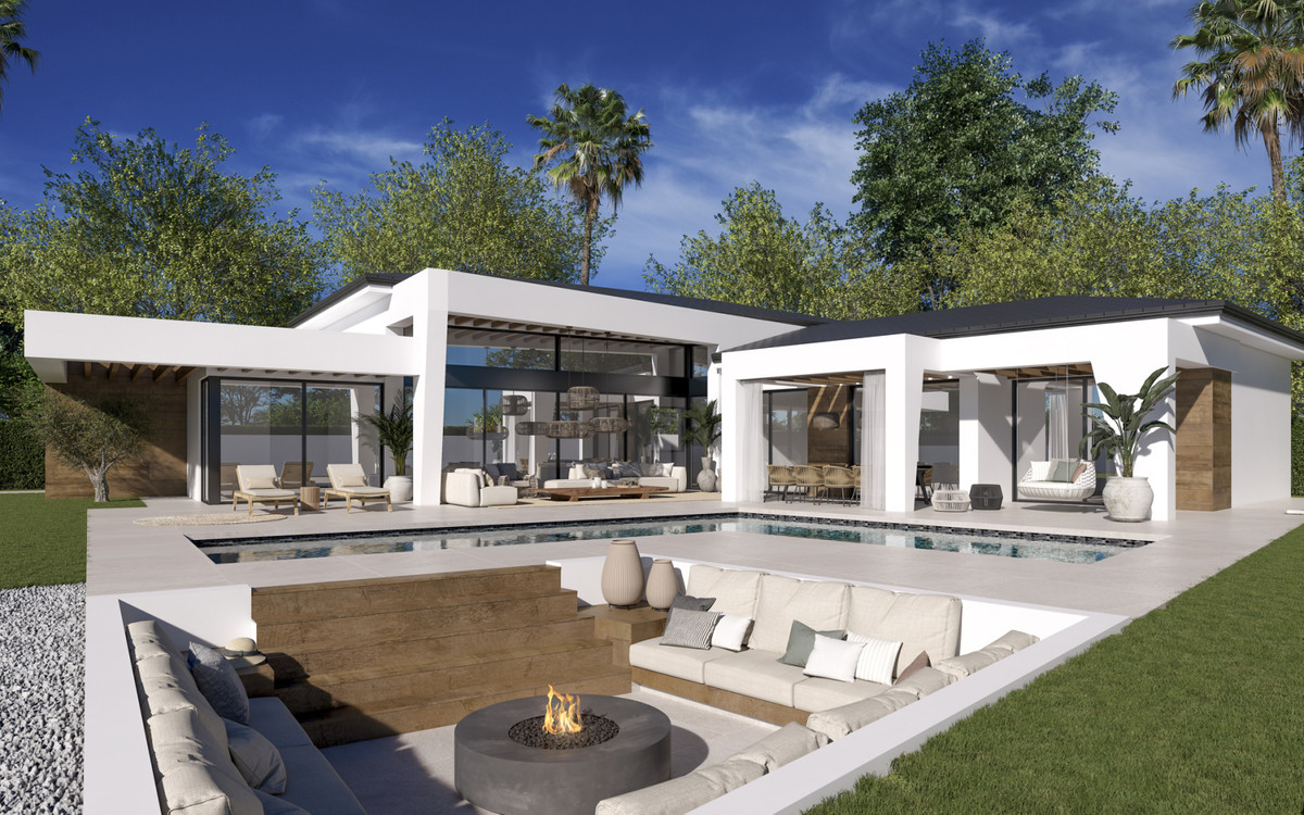 We know that life on the Costa del Sol is enjoyed especially outside, which is why here each home has its own landscaping project and an organic garden with a growing area of about 36 m2. The landscaped areas will have lawns with the installation of automatic irrigation with diffusers, as well as pre-installation of lighting in the gardens so that the client can customize it to their liking. In addition to the fabulous private pool that will have saline chlorination, areas of different depths and a space to place sunbeds to relax in the sun, in our pleasant garden we will have a beautiful chill out area with winter fire, perfect to enjoy a pleasant evening at the light of the candles. New Development: Prices from €3,890,000 to €3,890,000. [Bedrooms: 4] [Bathrooms: 5] [Built size: 229m2].