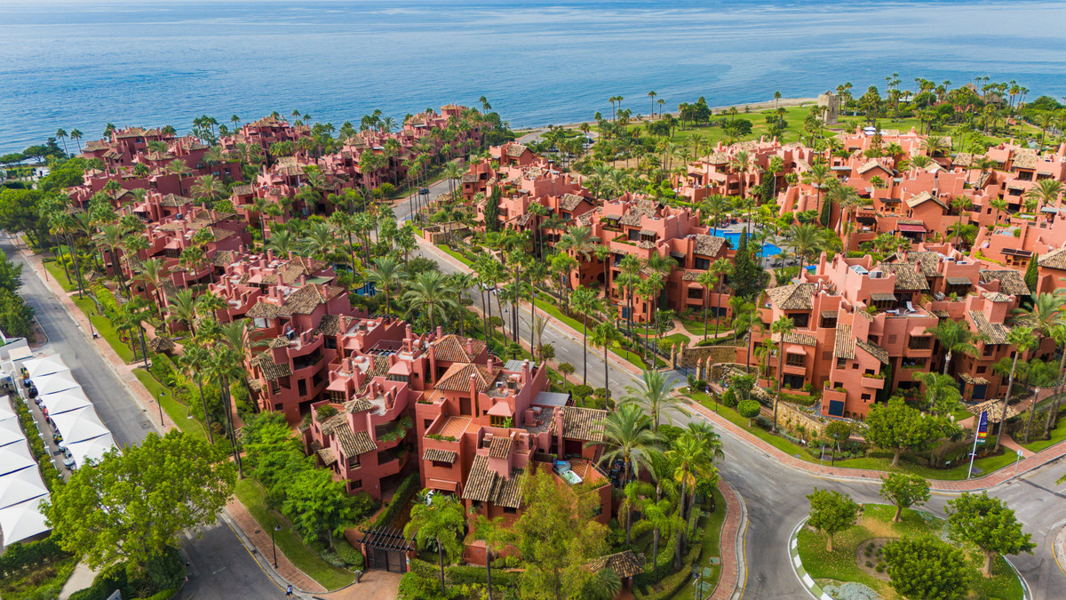 Impressive three bedroom south facing duplex penthouse in the prestigious and gated beachfront community Menara Beach, Estepona. This sought-after complex has well-kept tropical gardens, outdoor communal swimming pool, indoor heated swimming pool and gymnasium, as well as being just ten minutes’ drive to Puerto Banus and a short drive to shops, restaurants and all amenities. The property has an open plan living and dining area with patio doors leading to two private terraces with beautiful sea views; fully fitted kitchen with separate laundry area; guest suite with access to the terrace; guest bedroom; and a guest bathroom. The upper-level leads to the impressive master suite with vaulted ceilings and a private terrace; on this level there is an additional large terrace with BBQ area and stunning views of the community and sea. Other features include fitted wardrobes throughout, marble floors, hot and cold air conditioning, underfloor heating in the bathrooms, private parking and store room.