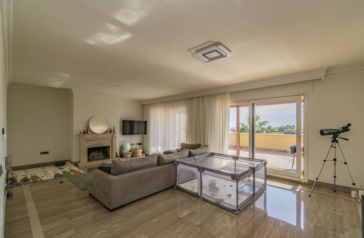 PENTHOUSE WITH SEA VIEWS IN THE MOST EXCLUSIVE AREA OF MARBELLA Spectacular penthouse, located in the exclusive area of Sierra Blanca, just a few minutes from Marbella's Golden Mile, Puerto Banus and the centre of Marbella. Penthouse, on one floor, consisting of a total of three bedrooms, two bathrooms plus a toilet, large living room with fireplace, kitchen with dining area and large terraces. Includes a garage space and a storage room. Established within an exclusive urbanisation with 24-hour security, with two swimming pools and gardens. An ideal property for clients who want to enjoy a unique property in the most exclusive and luxurious area of Marbella.