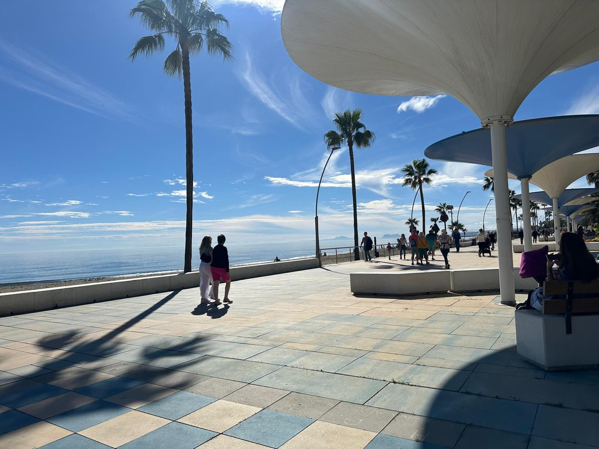 Excellent Opportunity to acquire a whole building right in the center of Estepona, just 50m from the beach and surrounded by Old Town streets. The building is built over 3 levels: bottom basement with own entrance is a business premise: upon opening the large garage door, there is a ramp with room to park 2 cars, and the premise, which can be used (and was used) as a bar, is 225m2 total, including kitchen and very spacious multi purpose room, along with 2 bathrooms. There are no exterior windows in this basement.